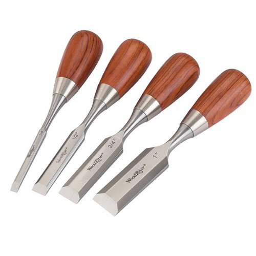 Beautifully crafted, well balanced 4 piece butt bench chisel set. CRV steel blades hardened to RC59-63 with steel ferrules and nicely finished off with genuine Bubinga handles. These little beauties are truly fun to use. Like theyre bigger brethren, they look good to the eye but really impress under use. Set includes 1/4", 1/2", 3/4" and 1" chisels. Overall length 6-1/2" with blades 2-3/8" long. Honing require before use.WoodRiver 4 Piece Butt Chisel Set Features